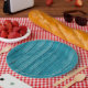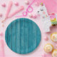 Um padrão de madeira verde e fino que dá a este prato uma vinheta de campo para misturar e combinar com outros padrões nesta doce coleção.