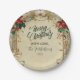 Prato De Papel Vintage Poinsettia e Holly Christmas