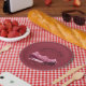 Prato De Papel Vintage Red Mountain Lake Sunset