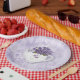 Este prato de papel Violets Teapot apresenta arte desenhada por rato e é perfeito para uma cozinha com estilo Shabby Chic.