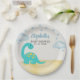 Prato De Papel Watercolor Dinosaur Baby shower boy