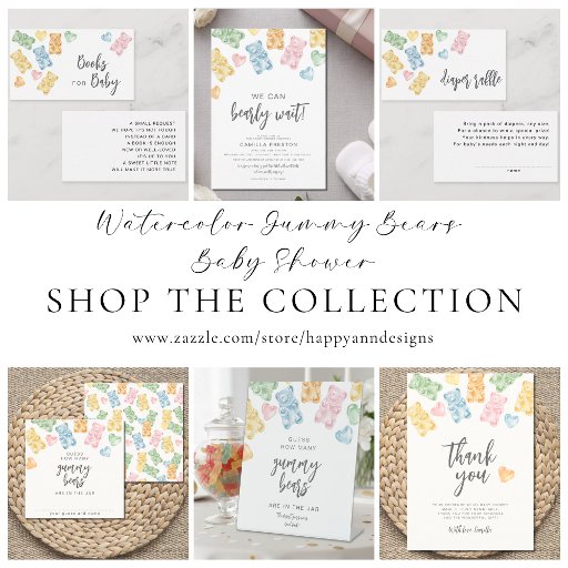 The Watercolor Gummy Bears Paper Plate adds a cheerful and modern touch to your party table, making it easy to create a coordinated look for your baby shower. Featuring a circular wreath of colorful watercolor gummy bears and sweet gummy hearts, this design perfectly captures the fun of welcoming a new little one. It is a wonderful choice for anyone looking for a unique, playful design for a gender-neutral or candy-themed celebration.