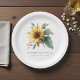 A bright yellow sunflower wedding paper plate featuring watercolor floral designs perfect for rustic country family reunions and celebrations.