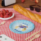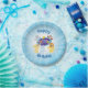 O logotipo clássico de Webkinz ancora esta imagem de um filhote de cachorro, de um hipopótamo, de um leão, de um macaco, de um pássaro e de um gato felizes de Webkinz. Um fundo azul listrado emocionante acentua suas expressões alegres, especialmente o filhote de cachorro e o hipopótamo altos-fiving no primeiro plano!