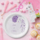 Placa romântica de papel de casamento com flores brancas e roxas. PARA MAIS PRODUTOS CORRESPONDENTES, entre em contato comigo.