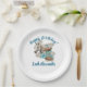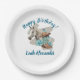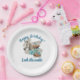 These customizable paper plates feature a western horse watercolor design with turquoise accents, inspired by soft western elegance and classic cowgirl style. The artwork includes delicate floral elements along with cowgirl boots and a cowgirl hat, creating a balanced look that feels both feminine and western.
