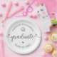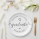 Be proud, rejoice and showcase this milestone of your favorite grad! Celebrate with these simple, modern, bold custom paper plates. Fun soft gray handwritten calligraphy script with cute, playful hearts and a graduation cap icon overlay a clean, white background. Personalize the custom text with your graduate’s name and class year or special message. Available in 2 sizes: 7” or 9”, round or square. Matching invites, thank you cards, hand fans, banners, yard signs and other graduation goodies are also available in this trendy and playful collection. Guaranteed to add stylish fun to their special party!