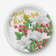 Prato De Papel White Red Floral Dourado Feliz Natal