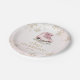 A beautiful ice-skating birthday paper plates featuring soft pink tones, elegant gold snowflakes, and watercolor ice skates. Perfect for winter birthdays and girls skating parties.