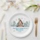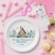 Add the perfect finishing touch to your winter baby shower favors with these adorable party paper plat . The design features a cozy watercolor gingerbread house topped with snowy icing, surrounded by a winter forest of pine trees and icy blue floral accents. Whimsical watercolor illustration with a rustic winter vibe Ideal for winter baby showers hosted in January, February, or March Icy blue, snowy white, and warm gingerbread brown (Gender Neutral / Boy friendly) Easily customize the details to create a warm and memorable invite for your guests (