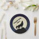 Prato De Papel Wolf Howling no Azul-Lua-Noite