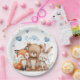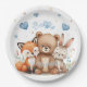 Prato De Papel Woodland Animals Party Pastel Blue Hearts Floral