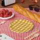 Prato De Papel Xadrez amarela e laranja
