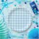 Prato De Papel Xadrez Azul Bebê