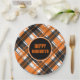 Prato De Papel Xadrez Branca e Laranja Preto do Halloween