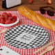 Prato De Papel Xadrez chá de panela Gingham Branco Preto