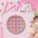 Prato De Papel Xadrez Chic Rosa e Cinza Padrão de Moda Festa
