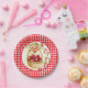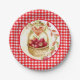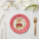 Deixe seus churrascos ao ar livre ou outros eventos familiares mais alegres com este lindo prato de papel xadrez vermelho. Este prato apresenta um padrão xadrez vermelho e branco estilo country com uma ilustração em aquarela de uma cesta de maçãs vintage. Um design único que você vai amar.
