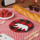 Prato De Papel Xadrez de Buffalo Vermelho e Urso Branco