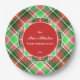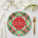 Prato De Papel Xadrez de Natal Verde Vermelho Clássico Festivo