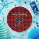 Design único com o padrão original de xadrez do búfalo em preto e vermelho, coração negro com uma falsa borda prateada para o seu monograma, bem como uma bela caligrafia moderna: "feliz tudo". Use a ferramenta Personalizar para adicionar sua versão inicial. Mais ideias de presentes na minha Coleção Buffalo Checks.