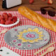 Yellow and grey floral patterns is a beautiful AI art design that shows yellow and grey floral patterns with pearls. They are the perfect paper plates to impress your guests