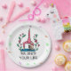 Yoga equilibra sua vida em pratos de papel ioga cor-de-rosa