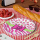 Prato De Papel zebra branca rosa-quente Monograma inicial da pele