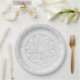Este design é inspirado em um prato de vidro prensado claro antigo, apresentando um motivo floral central ousado com pétalas texturizadas e uma borda rendilhada adornada com gravações delicadas em forma de leque em um fundo branco. Os detalhes intrincados refletem a arte da vidraria do início do século XX, perfeito para adicionar um toque vintage a qualquer ambiente. Feito a partir de imagens reais de pratos históricos.