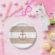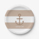 Pratos Âncora Listrados de Bege Marrom e Branco. Personalize com qualquer texto. Itens correspondentes estão disponíveis.