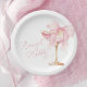 Sirva seus petiscos com estilo nestes pratos de chá de noiva com um copo de champanhe dourado e rosa, um laço rosa desbotado e pétalas de flores. Elegantes e práticos para a sua celebração de brunch e bolhas.