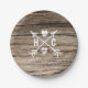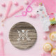 Pratos de casamento country de madeira rústica com corações e setas. Personalize com qualquer texto. Itens correspondentes estão disponíveis.