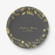 Pratos de casamento florais em cinza carvão e dourado falso. Personalize com qualquer texto. Itens correspondentes estão disponíveis.