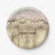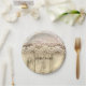 Pratos de festa de casamento rústicos de renda e madeira vintage. Personalize com qualquer texto. Itens correspondentes estão disponíveis.