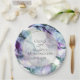 PRATOS DE PAPEL PARA CASAMENTO | Redemoinhos fluidos e abstratos de tinta aparecem como fumaça ou vapor intensamente coloridos - em tons de roxo ultra violeta, índigo e azul-teal. Uma moldura dourada com preenchimento translúcido esfumaçado é onde seus detalhes serão inseridos. Este é um design abstrato único criado para a BarefootBride™ por © WhimsicalArtwork™. Personalize o texto, estilo de fonte, cor e tamanho. Criamos este modelo para facilitar a personalização com suas próprias informações. Esta é parte de uma Suite Completa de Papelaria de Casamento com papelaria de casamento, chá de bebê e outros eventos projetados por © WhimsicalArtwork™.
