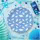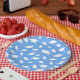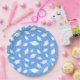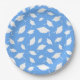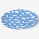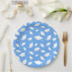 Pratos de papel para festa mostrados com uma celebração de estampa de gorros de formatura.