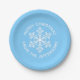 Um floco de neve branco sobre fundo azul pálido com "Feliz Natal" da família ao seu redor.