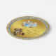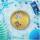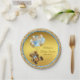 Pratos de papel para chá de bebê de urso de pelúcia com adorável urso de pelúcia e belos balões azuis e dourados em um lindo fundo azul e dourado. Estes pratos de papel para chá de bebê de urso de pelúcia são facilmente personalizados com o texto de sua escolha.