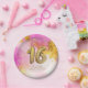 Estes Pratos de Papel de Aniversário de 16 Anos Rosa Dourado Tendência podem ser personalizados com nome e detalhes. Disponível em vários tamanhos e formas.