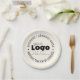 Adicione seu logotipo e duas linhas de texto a esses pratos de papel redondos descartáveis para jantar de festas e eventos com a facilidade de usar a ferramenta de personalização simples e fácil de usar da Zazzle e este modelo de estética minimalista limpa. Sem mínimos altos ou taxas de configuração