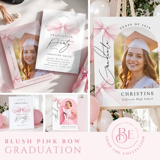 Pratos de papel elegantes com um design de laço rosa suave, criados para complementar um tema de formatura coquette sofisticado. Perfeitos para servir bolo, sobremesas ou petiscos leves, mantendo uma configuração de mesa de festa coesa, feminina e sofisticada.
