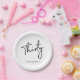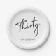 Este prato de papel personalizado irá adicionar um detalhe elegante ao seu dia especial. Este design apresenta letras simples e elegantes "Trinta" com texto personalizado. Convites e suprimentos para festa combinando estão disponíveis na minha loja BaraBomDesign.