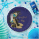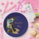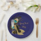 Pratos de papel de pavão com lindas penas de pavão, taça de champanhe e sapatos de salto alto elegantes com glitter dourado em um fundo de cor escolhida por si. Estes pratos de papel de sapatos de salto alto de pavão são facilmente personalizados para o seu evento, simplesmente adicionando o texto de sua escolha no estilo de letra que preferir.