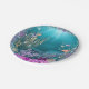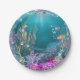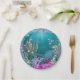 Pratos de papel debaixo do mar com belo fundo rosa e azul turquesa. Você pode adicionar texto para personalizar estes elegantes pratos de papel debaixo do mar.