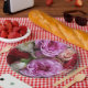 Pratos de papel floral com rosas e peônias