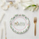 Pratos de papel para chá de bebê de menina com cervos adoráveis em aquarela em uma linda carta floral florestal e fundo de folhagens. Estes pratos de papel para chá de bebê de cerva são facilmente personalizados com texto.