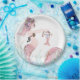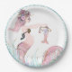 Pratos de papel para chá de bebê sereia com adorável mamãe sereia e roupa de bebê sereia em um lindo fundo lavanda sob o mar. Você pode personalizar facilmente estes adoráveis pratos de papel para chá de bebê sereia com texto e adicionar uma cor de fundo.