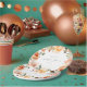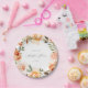 Pratos de papel para chá de noiva com moldura floral outonal botânica em aquarela terrosa.