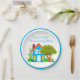 Dê as boas-vindas aos seus convidados à sua nova casa com um prato de papel personalizado para a festa de aquecimento. Personalize este prato com suas próprias palavras.***Este design gráfico foi criado a partir de ilustrações de domínio público. Cada ilustração foi sobreposta ao prato à mão. Este detalhe é único, pois apresenta uma paisagem atrás da casa e, nas laterais, uma árvore e um gato laranja tabby.