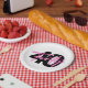 Celebre com estes pratos de papel inspirados em letreiros de neon para o aniversário de 40 anos.